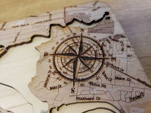 This is the most time I’ve ever spent on a vector file. Literally hundreds of hours was put into this map. Getting it scaled down to use for the glow forge was a challenging process. In addition, to get it to print the top layer on cherry took 2 hours and 20 minutes. So being that this is my second project on the glow forge, I’m very excited how easy the glowforge is to use, and I’m pretty happy with the results. I plan on painting the lake sections as well, so you won’t see any of the score marks for missing depths. Thanks to all of the forum posts that prepared me for being able to do a complex cut, score, and engrave.