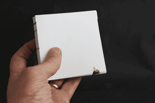 The book is cut from bristol board and the cells are highlighted with a water based marker. It is bound using a coptic binding.