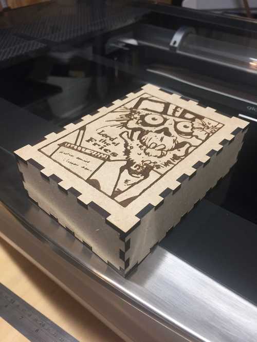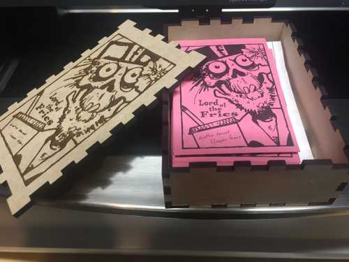 One of my most desired uses of my glowforge is making boxes for games that don’t have a box, or have a bad one. This is actually my second attempt at doing that, for an old Cheapass version of Lord of the Fries.