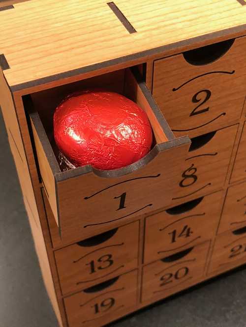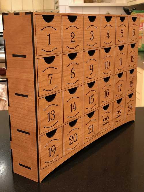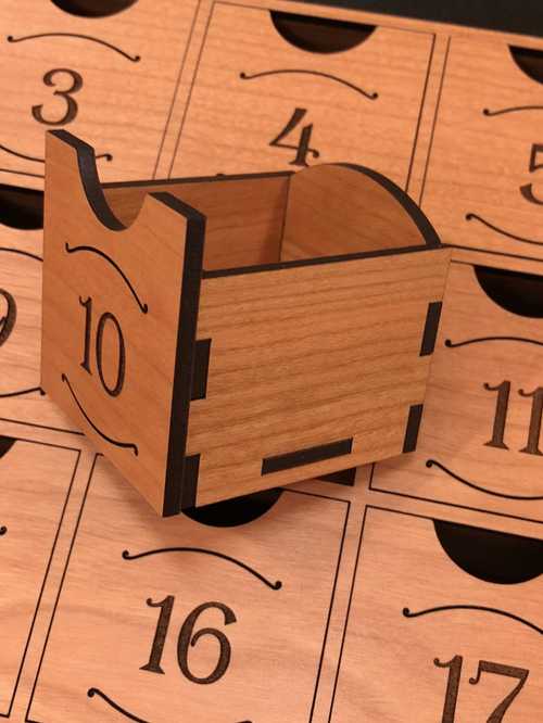 An advent calendar in Proofgrade Medium Cherry Plywood (mostly).