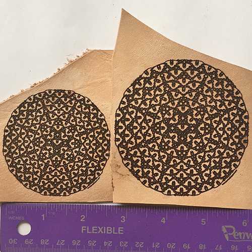 These pieces were done on my own 4 oz scrap leather, using 5-6 oz proof grade settings.