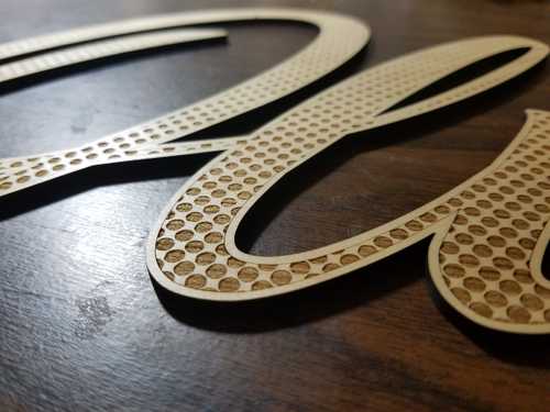 Once I had a working finished outline I figured I could push this simple idea to the max and try all 3 laser operations in one large project. Engrave, Score, & Cut.