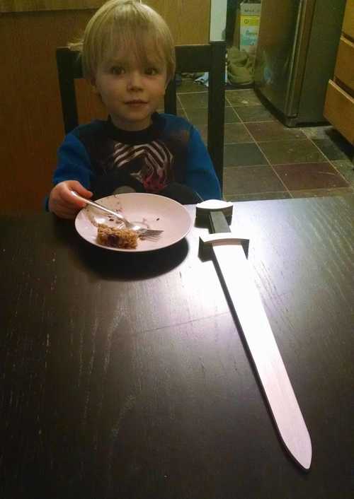 I got drug away from the GF for a bit by work, but I’ve got a couple of new projects I’m working on. This one is for my five year old son. He put in a request for a sword, and here it is, a viking era toy sword.
