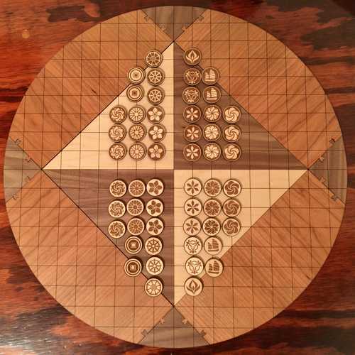 The board is 18 inches across, so the tiles are just shy of an inch. And here it is with some example tiles:
