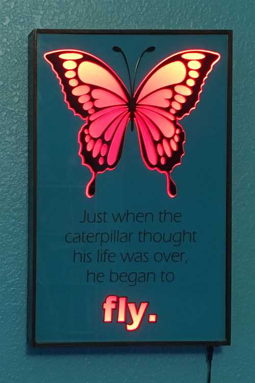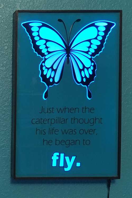 The frame was based on the one I used for the prior project, but this time the innards included multiple layers of acrylic (teal and black). For the innermost layer, I again used light-diffusing plastic from Inventables (http://www.inventables.com/categories/materials/plastic/light-diffusers).