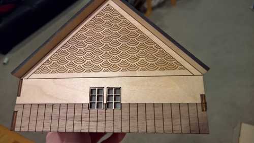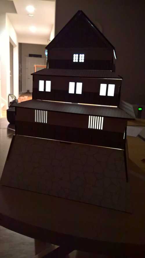Printing went pretty quick since we had leveraged a lot of score lines over rastering. Next was assembly time. She cut some tracing paper squares and taped them behind all the window holes.