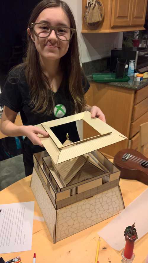 Overall it turned out quite nice and she did a great job working hard drawing and assembling (the laser did all the cutting work