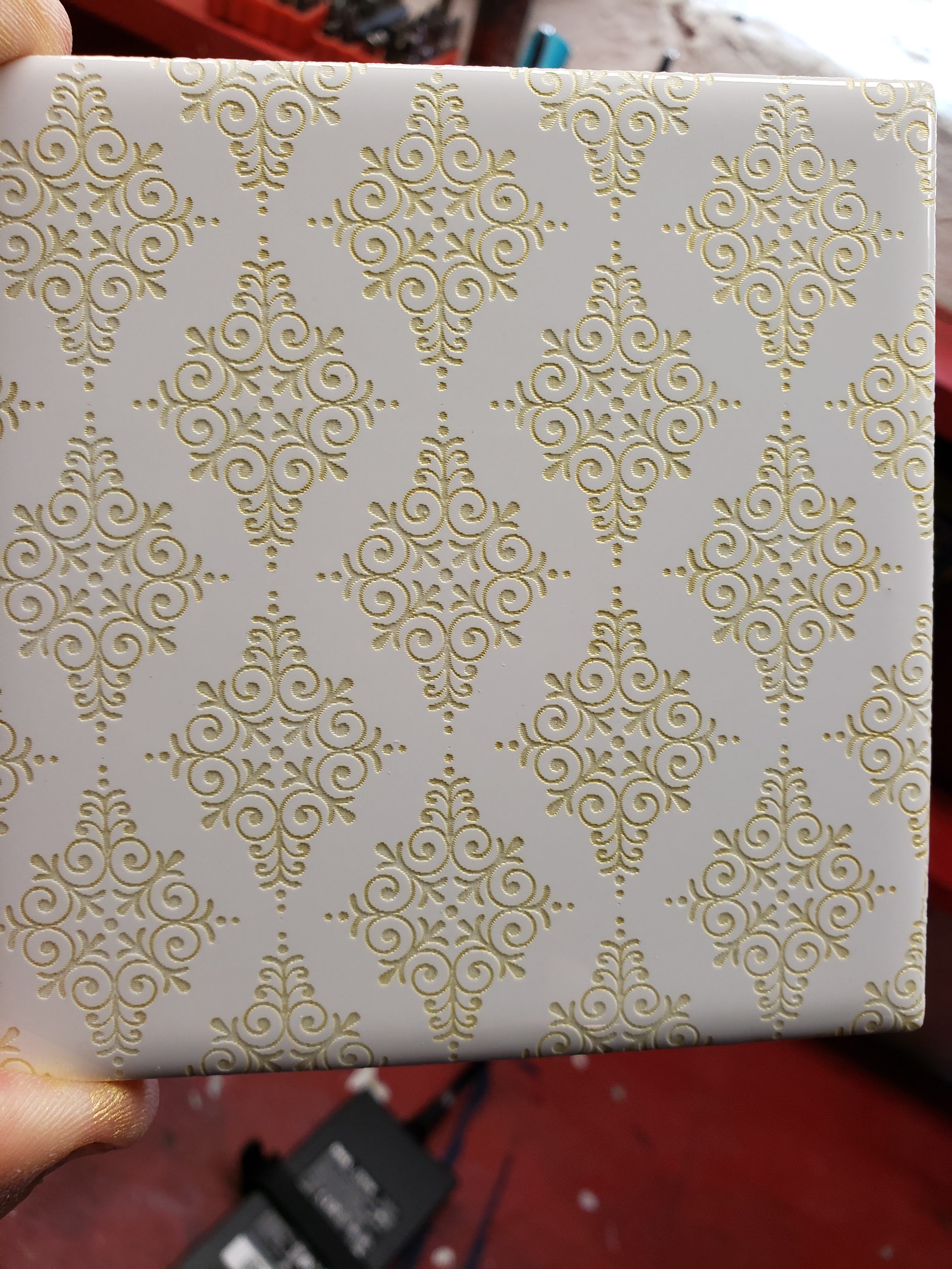 Made this ceramic tile and paint filled it gold. Thought it came out nice.! Still trying to establish my setting s on a lot of non proof grade materials.20190901_153934|375x500