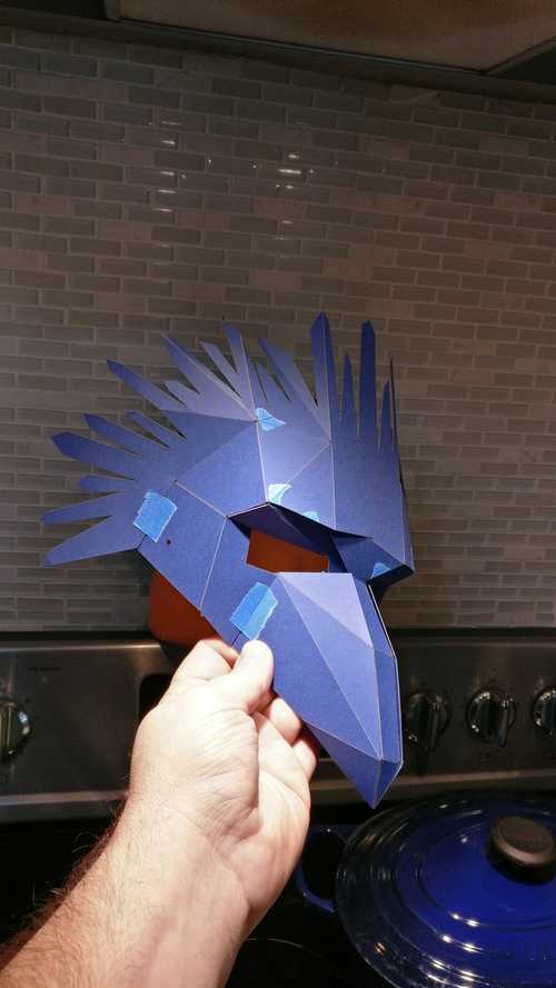 First thing, is finding a design she’d like. I mentioned animal masks, and she’s like “I want to be a fox.”. OK. Those are pretty plentiful. Found this person on Etsy who sells plans for low poly masks, including a fox. She likes it. They have a set that includes a raven, which I like.