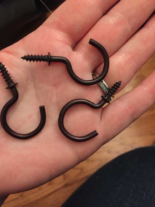 I used 1 1/4" hooks and aligned the holes in the file so that the piece would hang about center of the cubby hole.