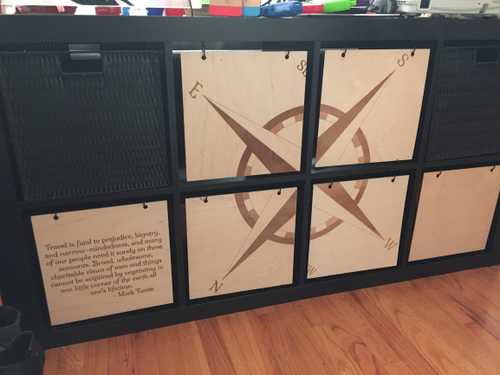 So I decided to fix that with some doors made on the glowforge. Because the pieces had to be 12x12", I used this non-proofgrade wood: https://www.amazon.com/gp/product/B01MXVB6O6/ref=oh_aui_search_detailpage?ie=UTF8&psc=1 This stuff is pretty cheap, and had lots of splinters. I had to lightly sand the edges and fronts and couldn’t really tape the front because the tape created splinters too. (definitely been spoiled with the PG). Because of this, I set my etch settings pretty light so smoke stains wouldn’t be too much of a problem.