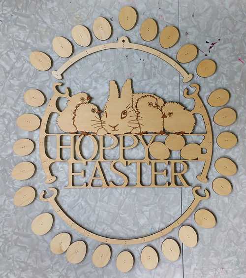 Next I found some images of chicks and bunnies for inspiration, and got to work on the art for the center of the wreath. For this project I decided to work in CAD so that I could have the accuray I would need for wood joints on the frame, and for lining up pin-holes in the eggs with corresponding holes in the frame.