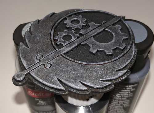 This object will probably look better coated with matte finish. The shiny gunmetal obscures the lighter weathered edges and the thing actually looks kind of lame unless the light is just right–then the depth really pops.