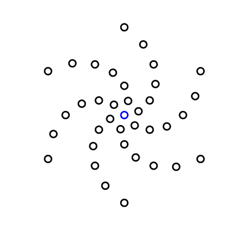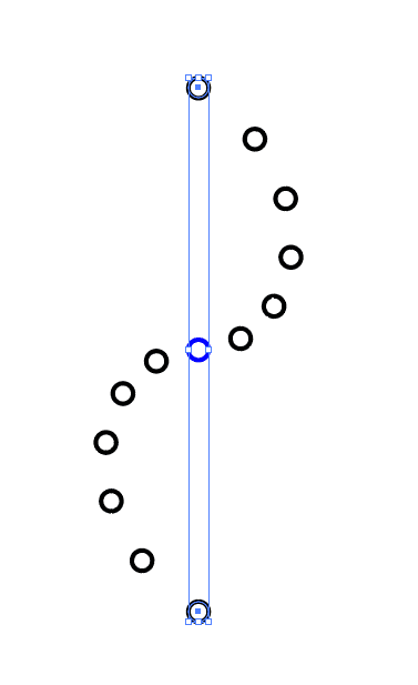 The one in the center is blue a s a useful visual marker. After that, select the circles immediately to the left and right of the circle and rotate 15 degrees: