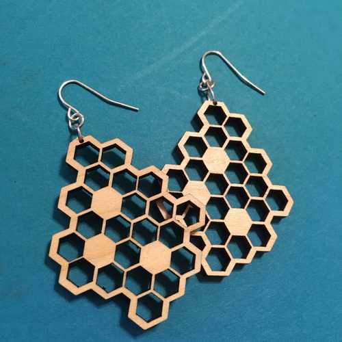 Also, designed some honeycomb earrings that I printed on the Proofgrade maple hardwood, as well as a undefined-use honey-comb shaped thing as an experiment.
