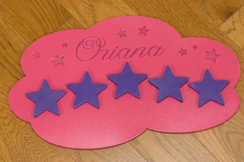 We have a lot of trouble getting my five year old daughter to go to bed on time, so we added some positive incentive - if Oriana makes it to bed before 8:30pm, she gets a star. Five stars, she gets a new book. Right now, though, I record her star-count on my phone. I feel like she doesn’t really know how many stars she has at any given time, and I felt something a bit more visual would add some incentive.