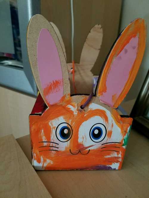 The latest project was an Easter Basket, made from pine & a paper posterboard type of material; some of you may have made the same with your kids…