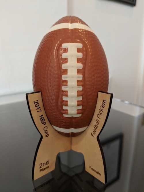 Not my first cut on Lazarus, but my first post. Back when we were still in football season, my company was having a small fantasy football league and I had the chance to create some stands for these stress balls.