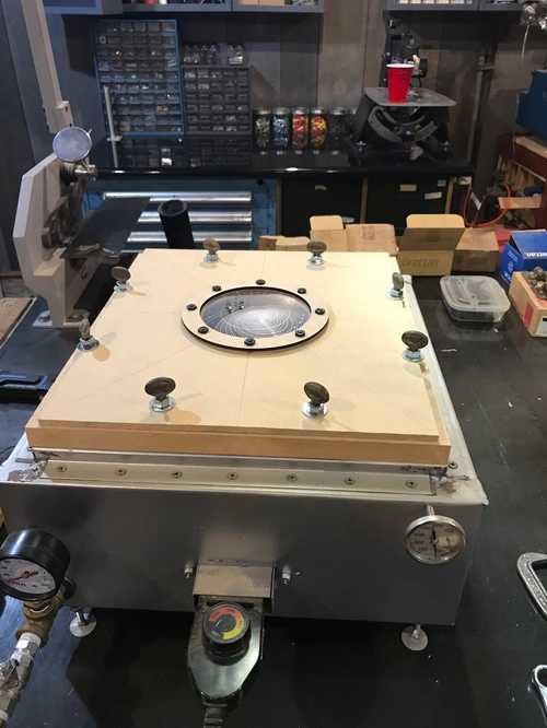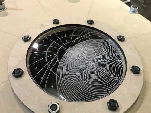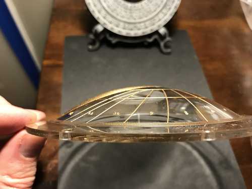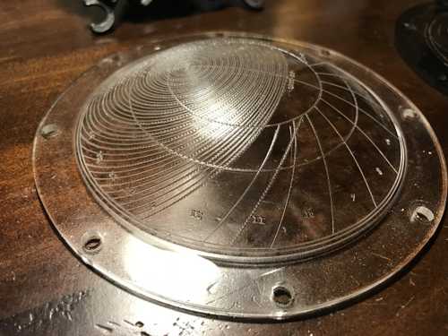 This is an Astrolabe in progress. I used a blow forming rig I made to form the dome after engraving on the GF in