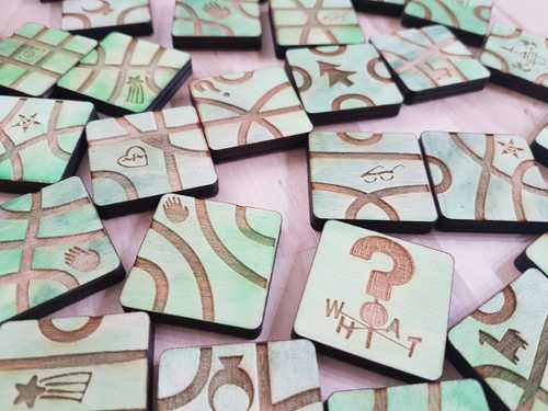 Unexpectedly, the most challenging part of making this was the player tokens. I had to cut them 6 times the first time I made it and 3 times the second time I made it. Sadly I forgot to write down the settings that worked best the first time around. The grayscale versions of the colored images were so different, I had to set the power differently for each token to get good results.