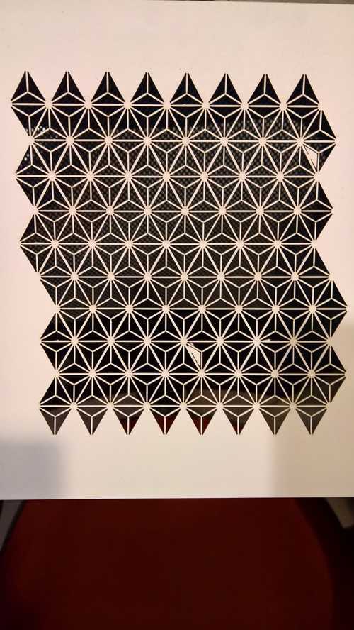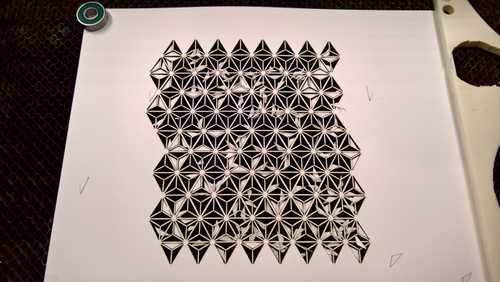 I think a couple of the cutouts blew in front of the laser preventing a couple of the triangles to cut properly so you’ll see they’re still attached. One of the tricky parts of working with lightweight material like cardstock