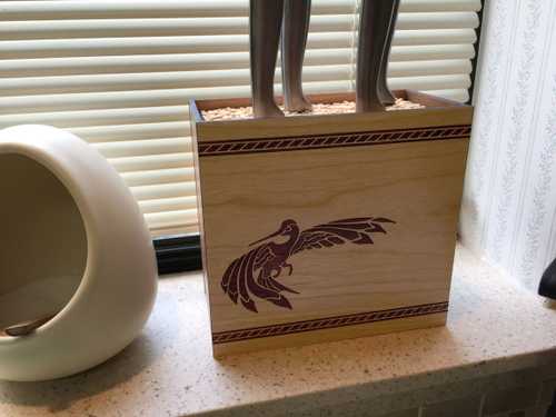 Okay changed the shape of the box up a little, cleaned up the inlay and widened the spacing where it needed it for the bird and the stripes to make them pop a little more…I like this one a lot better with those reeds. The other one was just a hair too short, and I didn’t like the front.
