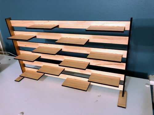My son got a ton of Lego minifigs for Christmas from relatives, so I designed and built this little shelf to hold (many of) them that he can put on display in his room.