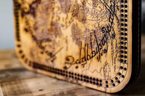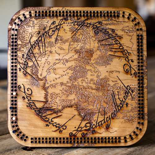 , I made a Lord of the Rings cribbage board for myself. I ended up having to do the top layer twice, as the original one done in walnut plywood from Owyn’s had some of the top layer chip off. I re-ran it and this time I didn’t have any walnut plywood left, so I did it in Cherry, which is what I had on hand. I added a compartment for the pegs on the bottom. The original one I used masking, but it was dreadful to get off. So the second one I didn’t. Not sure if I like the burnt edges on this, but my thought was that it fits the theme. I’m happy with the end result.