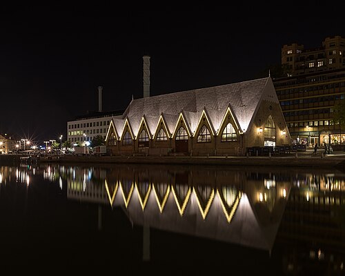 Feskekôrka (meaning "fish church") is a historic building in Gothenburg, Sweden that formerly housed an indoor fish market. Its name is based on the building's resemblance to a neo-Gothic church.