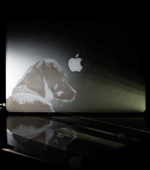 I wanted to engrave something - but I didn’t know what. I looked through thousands of images I’ve done over the years. None seemed right with that goofy Apple right in the middle. Obviously, Apple was thinking about reaping the rewards of movie, TV and Starbucks exposure and not those of us with laser beams.