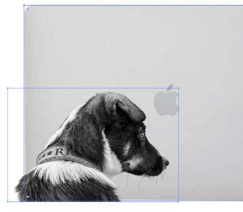 I dropped Rio into the document and then dropped the product shot in as well. I scaled the product shot to match my rectangle. It wasn’t perfect, but it was realllllly close, so I could live with it. I scaled Rio down and put him where I wanted him. He’s so good at listening. I made sure that he didn’t fall on the Apple bug in the dang dead center of my laptop. This is why I got the product shot to reference off of.
