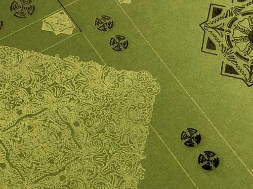 I can’t say I’ve had complete success yet as it is going to take a lot of fine tuning of the settings to get a perfect result, but the experiments so far have been great. My primary goal of these was to see how much detail could be squeezed out of the glowforge onto paper. Many of my card designs are incredibly intricate, a challenge even for traditional offset printing and hot-stamping, so I decided to toss one of my most difficult designs at it and see what happens.