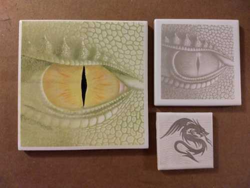 I was trying a couple of things with the larger one. That’s a 3 inch tile. I took the original image and broke it into 4 quadrants to see how noticeable it would be if I needed to break an image up for something large. If you look close, you can see the quadrant edges. The center line ran through the pupil, which was a poor choice on my part, since your eye is drawn to that anyway.