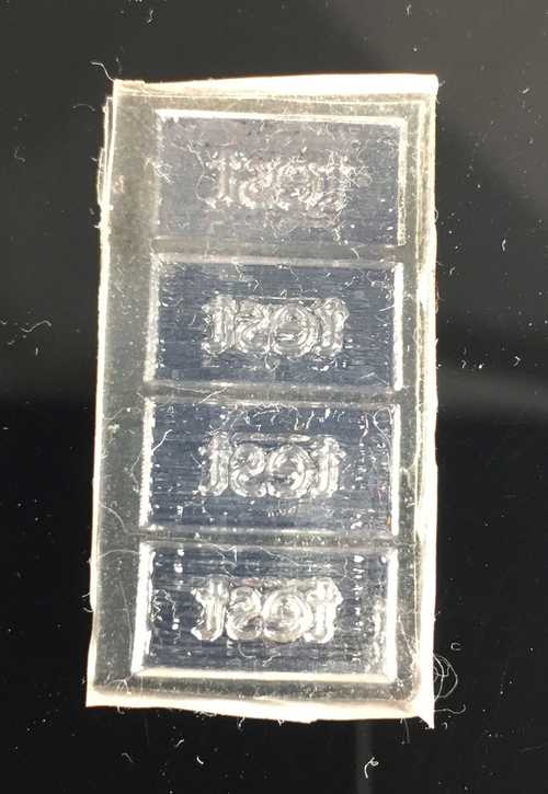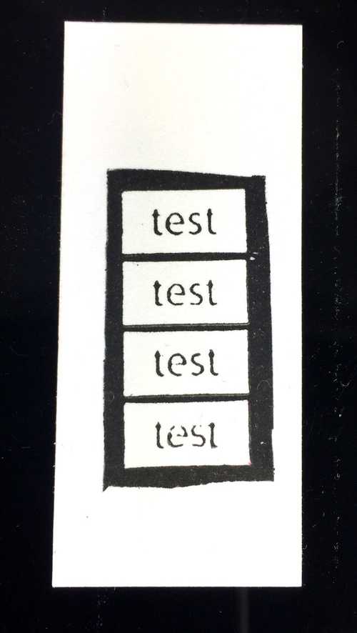 Result was not bad at all! I’d like to go even lower in power if that were possible, but maybe I’ll test a lower LPI next time. There was a tiny amount of fine detail lost but considering this is 10 pt type, I’m pretty happy. Here’s the stamp and the stamped image using black ink: