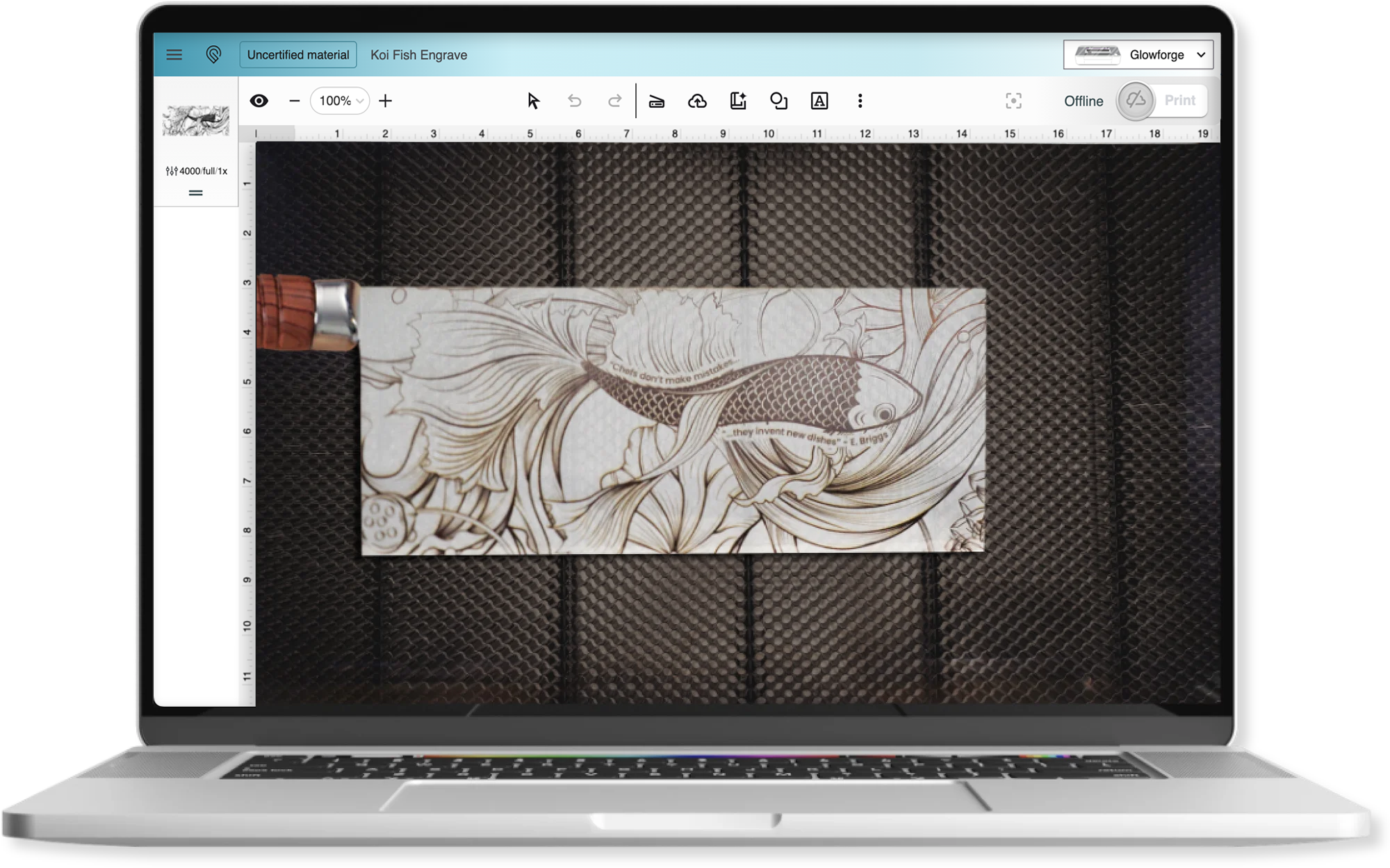 See your final product before you print with Glowforge HD Preview Mode. The real-time updates mean you see your designs in crystal clear detail before you print, saving you time and resources.