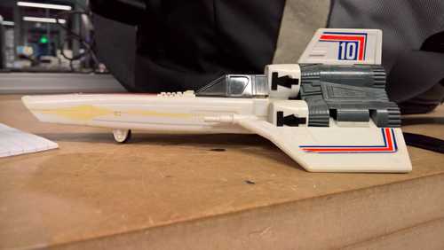 So, I had my old Battlestar Galactica Viper, but had lost the choking hazard/missile many moons ago. I’d played with the idea of 3d printing some, but realized as I was making the wooden one that I could just cut the profile of one out of 1/8" acrylic and it would probably work. So, I grabbed a pair of calipers and measured some of the slots on the toy and guessed at some of the internal measurements, then looked at some pictures of the original ones on the web and roughed one out in Illustrator. My first attempt was a bit too short to reach back to the locking mechanism, but gave me hope in the rest of the fit so I stretched it out a bit longer and the second try seems to work