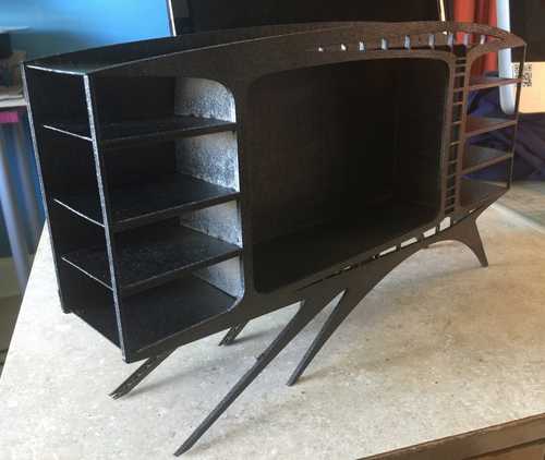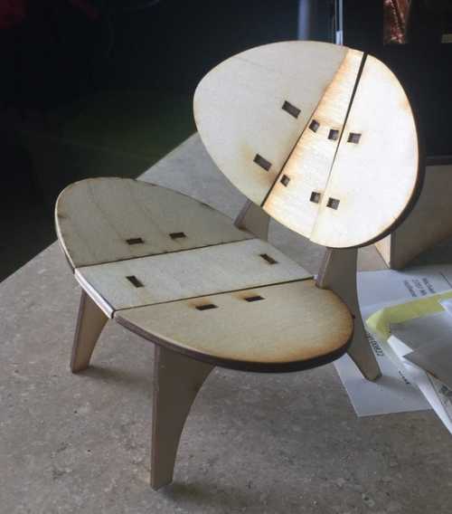Here is a chair and a couple of candidates for our new entertainment center. It is all pretty quick and dirty, CA glue on 3mm birch ply and cardboard, but pretty satisfying to see and handle.