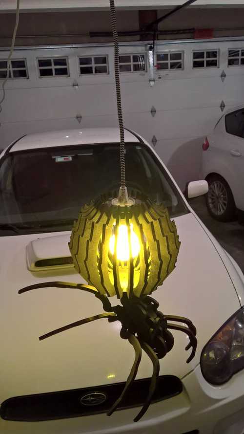 Assembly was fairly straight forward, though I may further adjust some of the pieces like scaling up the two rings that look like gears and the 24 ribs that go around the globe to make them easier to fit together. I picked up an LED yellow bug light and a hanging lamp cord from Ikea to finish it off.