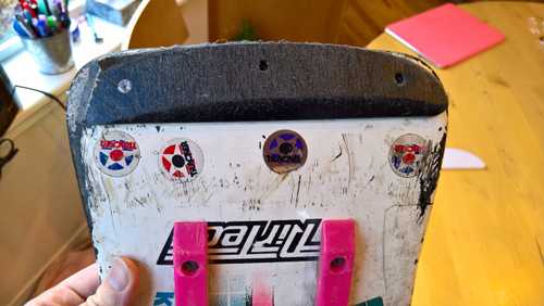 My daughters found my old skateboard and were playing around with it the other day. I noticed that the plate that protects the back of it for breaking was worn through.