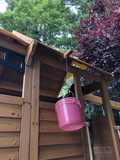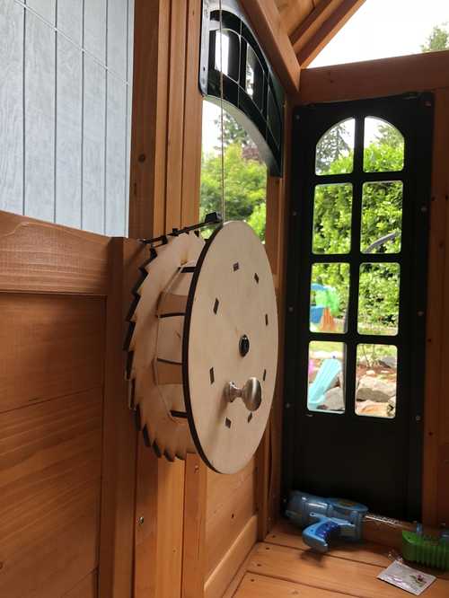 We got a new play set from the sad demise of Toy R Us a few weeks ago. When my four year old started throwing toys into the second floor, because she couldn’t climb and hold them, it became clear we needed a winch.