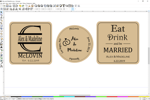 My niece was married on Saturday. They requested some type of memento or favor for the occasion. We went through some different ideas and they settled on coasters. I know they are the Glowforge version of the summer camp wallet project, but low hanging fruit tastes just as sweet.