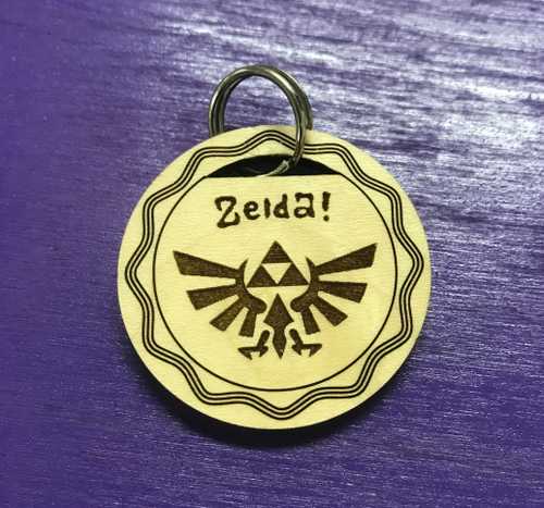 We adopted a dog from Animal Services last month, and named her Zelda (because she’s a princess, but also a secret ninja). Custom leather collar and engraved anodized aluminum dog tags will happen eventually, but in the meantime I grabbed the pendant design from the catalog and dropped a stylized triforce onto it. Later, I wrote “Zelda” on the masking with a pen, dropped it back into it’s hole and used the trace function. It was flipped in place and the other side got the exact same treatment.