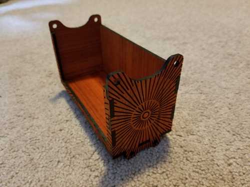 So, I polished off the design (created in Illustrator as vector cut pattern with an embedded engraved image saved as an .svg) with rounded corners, added curves to the design, and a pattern texture to be engraved. I think it turned out great!