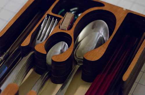 It took about a week of our time, but we were doing it after work and letting the glued layers dry over night. I added a oil finish to the cherry and everything got a few coats of spray lacquer for added protection. All in all, it looks great and fits the cutlery perfectly.