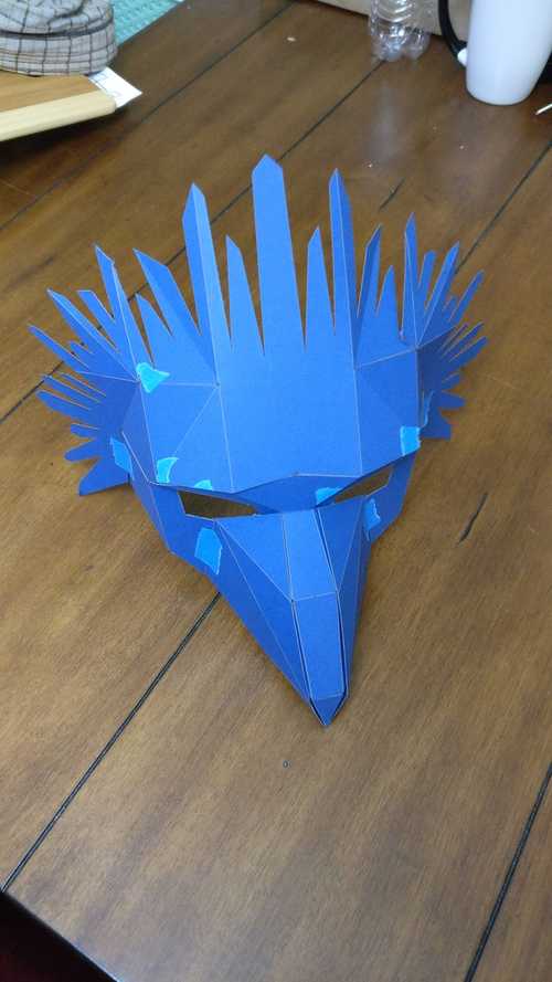 And now for the final product. Riveted the leather straps on and voila. I have a Low poly raven mask made from leather. Thank you !