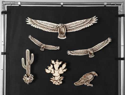 All built from layered 1/8" baltic birch, with custom wood hanging spacers that extend them to float off the wall 1/2" or so. The vulture is 28" wide, which required some jigsaw puzzle style cuts behind the body to connect and build out. From the wall spacer out to the head, there are a whopping 16 layers of birch, making it 2" thick all in all. So far I haven’t used the passthrough slot except to cut down my larger sheets of birch, but soon I’ll fiddle with some of the tactics you fine folks have shared in the forum for doing longer pieces.
