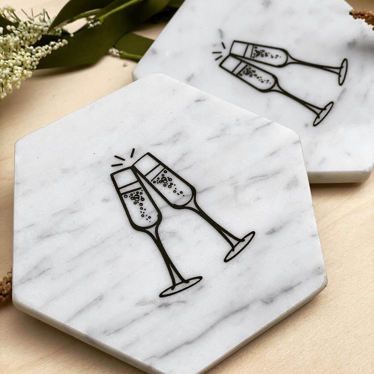 Add a custom touch, unique detail, or innovative design to your client's event. Cut and engrave hundreds of materials like wood, acrylic, leather, paper, metal, (even food) and create wooden marquees, slate table settings, acrylic party favors, or paper invitations, and more!
