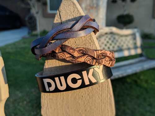 For the first part of my Father’s Day gift, I made some leather bracelets. I loved the way they turned out, so I thought I’d share! The top and bottom bracelet were dyed and the middle one was just engraved.
