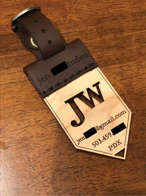 I made this practical little tag out of scrap leather and proofgrade maple hardwood. I had some issues getting the right cut settings for the leather and realized that the lenses and lasery-bits needed to be cleaned. After a little light housekeeping, everything cut like a charm… mostly.!