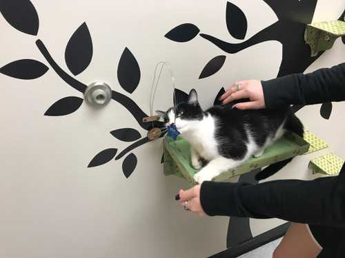 As the final touch for the Cat Perch project we figured we needed some sort of cat toy, so I had the idea to hang a dog tag in front of the shelf. So i put a mouse on one, but one of the staff suggested I put the hospital logo so when anyone takes a picture of their cat, it will have the hospital info on it.